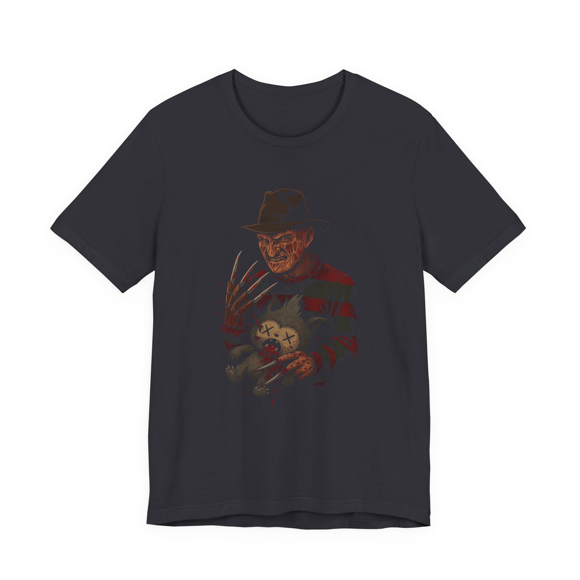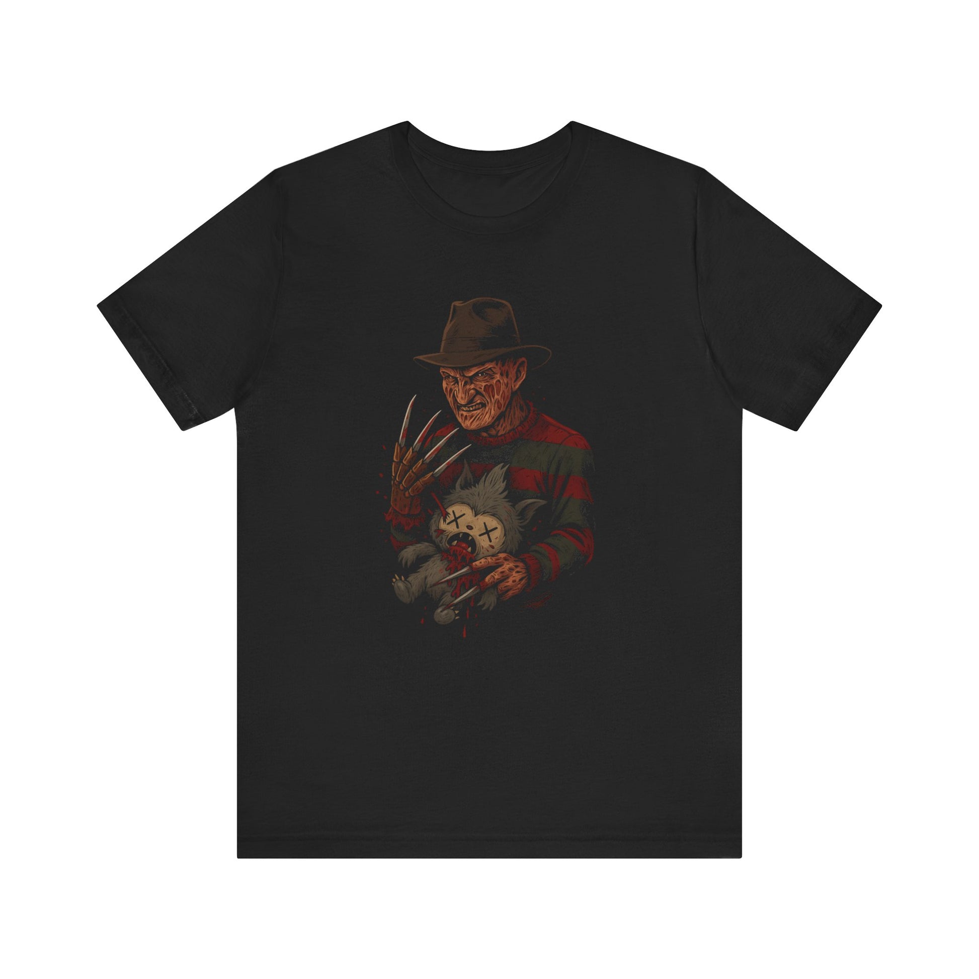 Treddy Bubu T-Shirt featuring a spooky and haunting design. Perfect for horror movie lovers and fans of gory style.
